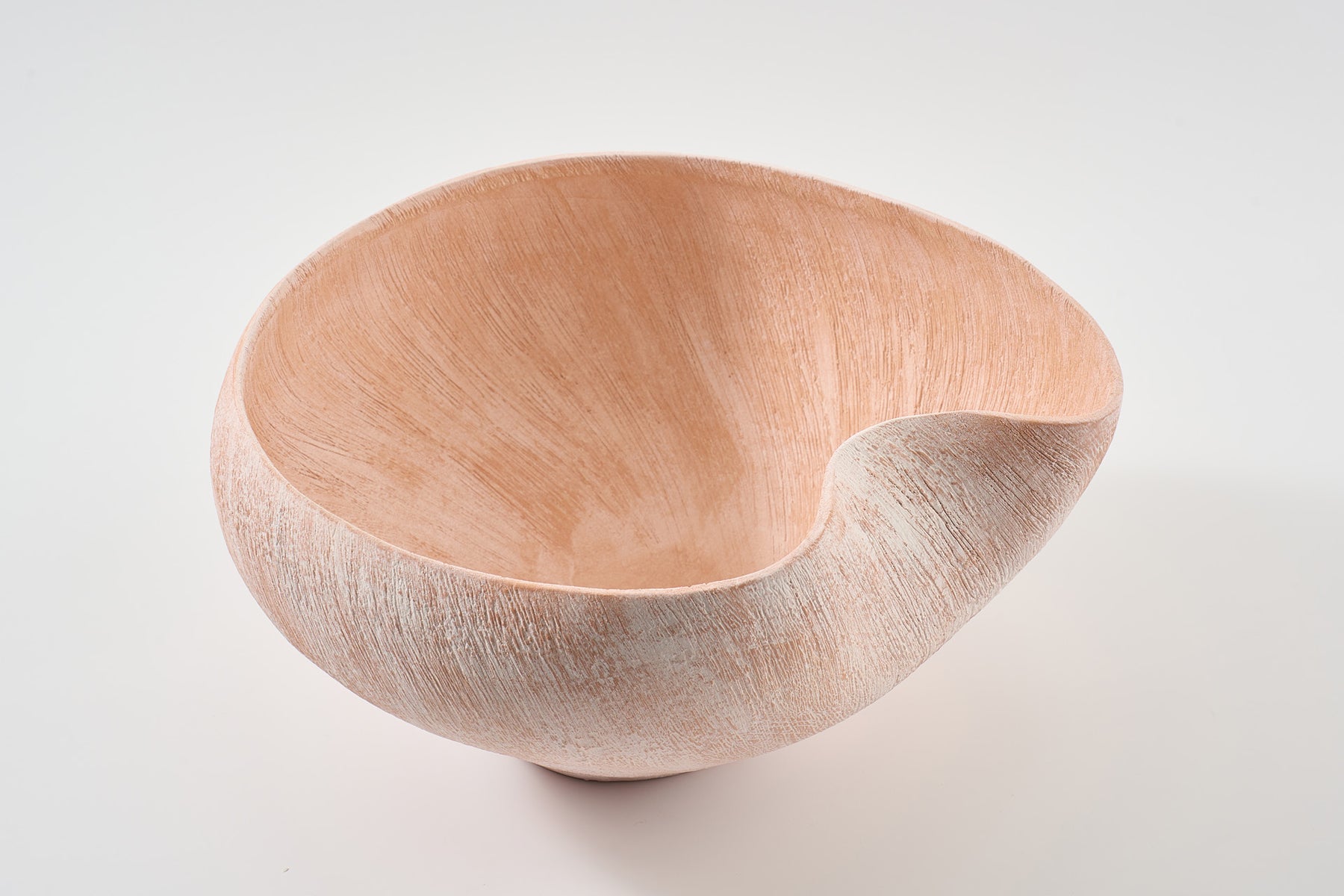 This bowl has a flowing, organic silhouette, as if it were gently expanding outward like a cosmic cloud. No harsh lines—its shape would seem almost in motion, with soft curves and asymmetry that hint at drifting gases.