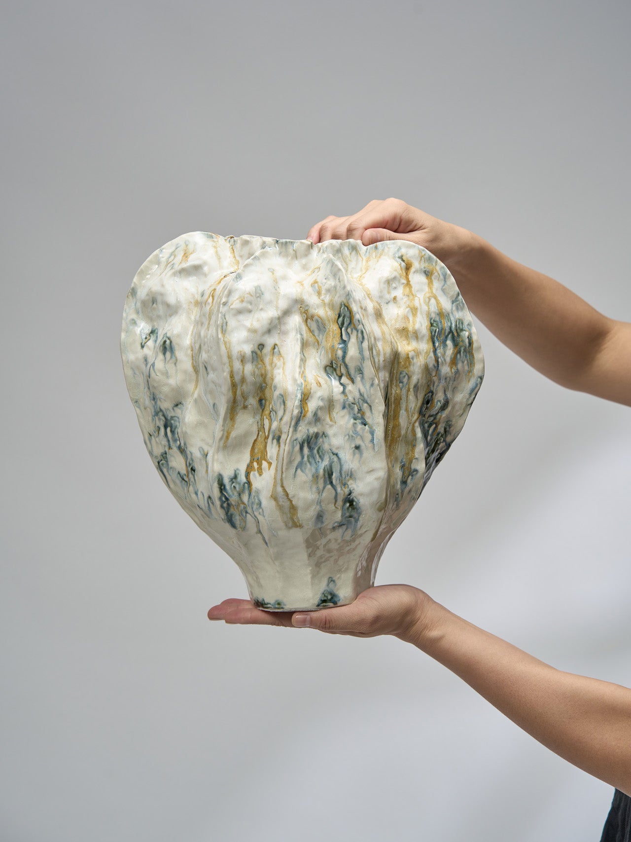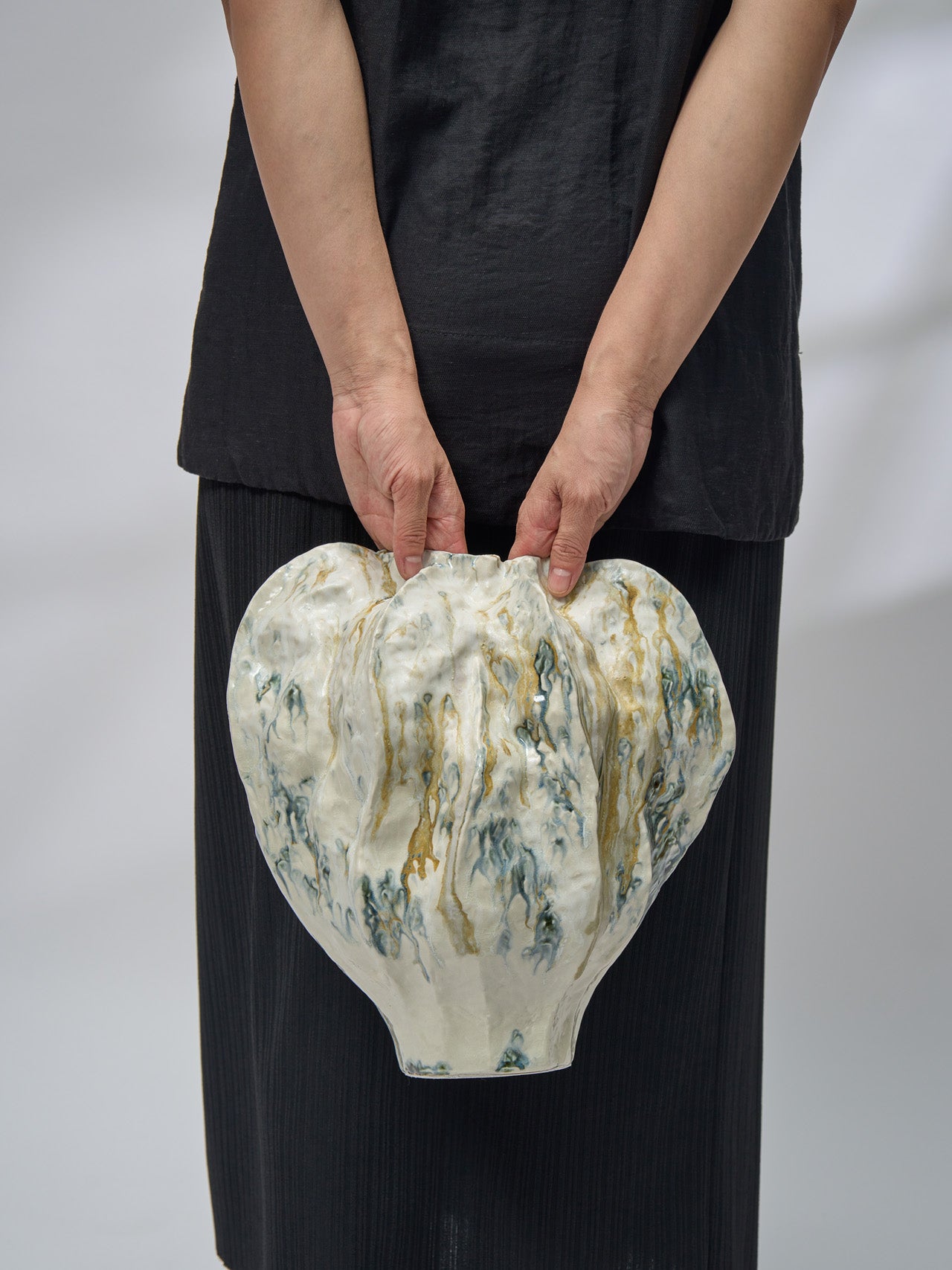 Crafted to evoke a symphony of fleeting beauty, this vase showcases a harmonious blend of experimental glazes and tactile textures. Its one-of-a-kind finish celebrates the delicate balance between precision and spontaneity, making each piece an exclusive masterpiece.
